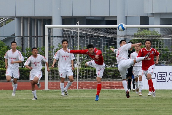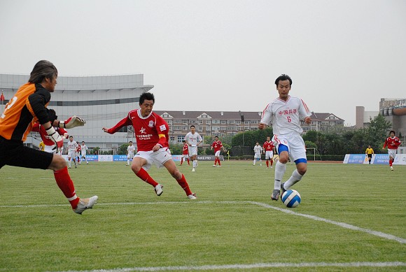 開場后雙方都打的比較積極,但是相對來說上海七斗星隊的進攻速度比較慢,拼搶反而不如愛國者大學生隊勇猛。在雙方試探性的打了10分鐘以后,比賽漸漸加快了節奏,第18分鐘,上海隊獲得任意球機會,但是并沒有形成威脅,第25分鐘,上海隊發動進攻,左路突破傳中,中路接應的上海球員橫敲,但是在最后射門的一剎那沒有打好,被愛國者大學生門將王毅奮力撲出。