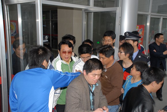 北京愛國者大學生以勇猛的拼搶和團隊精神征服了現場觀眾,賽后眾多球迷為求得金指的簽名將通道圍得水泄不通。