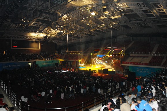 晚上7:00,我校體育館燈火通明,伴隨著來自北京林業大學的同學敲響的喧騰的鼓點,深秋歌會決賽揭開了序幕。