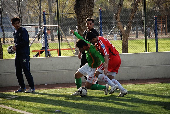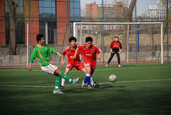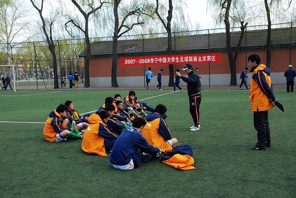 3月25日下午,2008年李寧中國大學生足球聯(lián)賽北京市賽區(qū)預賽在北京體育大學開幕,首先由北京理工大學(綠)VS中國人民大學(紅)。在去年的北京市大學生甲級聯(lián)賽的決賽中,由于北理工兩線作戰(zhàn),頭天剛剛打完對廣州醫(yī)藥的比賽,加上替補陣容發(fā)揮也不好,最終以1:5輸給了人大,屈居亞軍。