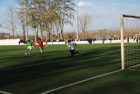 點球由北理工主力后衛(wèi)張樹主罰,皮球應聲入網(wǎng),場上比分已經(jīng)變?yōu)?:0,直到中場休息。