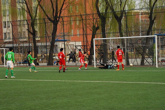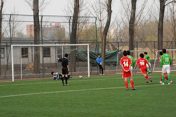 上半場結束前,北理工還獲得了一個點球機會,可惜盧斌的罰球與前幾天中澳之戰中邵佳一的點球如出一轍,踢的太正,被守門員腿部擋出后,盧斌再次補射偏出球門。