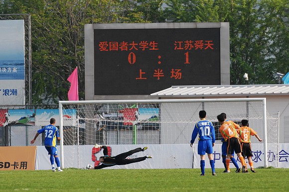 第88分鐘,愛國者隊獲得前場任意球機會,袁微主罰至禁區內,江蘇隊不慎打進烏龍球。最終舜天在客場3-1完勝學生軍排名榜首。