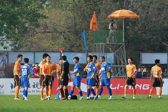 第30分鐘,愛國者隊姚遠禁區前再次斷球成功,愛國者隊韓國留學生外援樸天龍頭球攻門,皮球已經繞過守門員直奔球門右側。