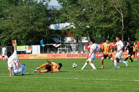 下半場雙方易邊再戰,在頂住了下半場開場后無錫中邦的猛烈進攻后,第56分鐘,愛國者隊反而利用一次前場任意球的機會擴大了比分。盧斌接到袁微的任意球以一記漂亮的頭球直接破門,將比分改寫為2-0。