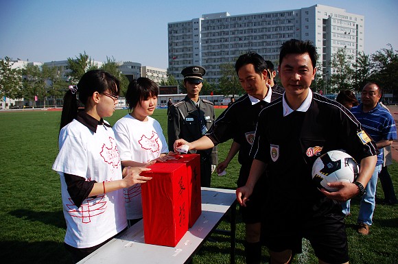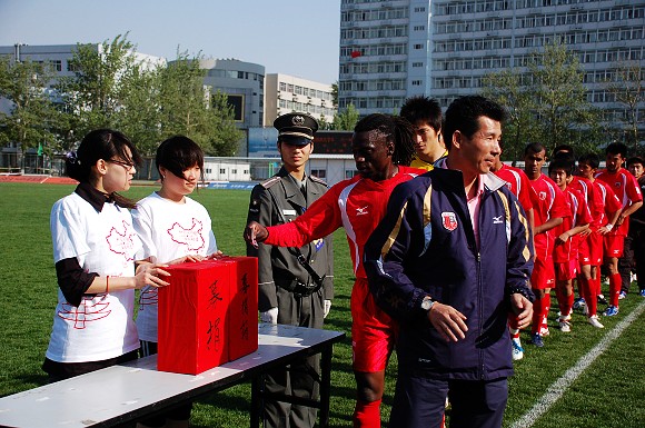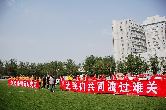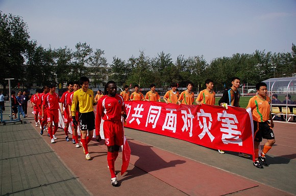 由于四川省汶川地區發生強烈地震,社會各界已經全力投入到了抗震救災工作中,為了配合抗震救災工作,為災區人民奉獻一份愛心,中甲聯賽北理工賽區按照中國足協的指示將本輪聯賽改為義賽并在比賽間隙舉行了默哀和募捐活動。