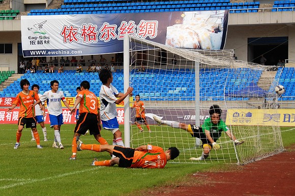 開場第6分鐘,四川右路組織快速進攻,29號奧古斯托擺脫1名防守隊員起腳射門,球貼著立柱滾出邊線。四川隊完成第一腳打門。