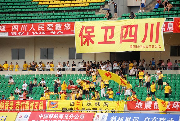由于地震受災,川足在5月12日之后的比賽全部改為了客場,而從七場比賽來看,球隊也只是取得了一勝一平。尤其在近4場比賽當中,川足不僅一個積分沒有拿到,甚至也只是打進了一個進球,這與聯(lián)賽初期爆冷擊敗舜天的場景可謂悲喜兩重天。最近幾天,南充氣溫陡增,賽場的溫度接近38度,但這并未削減狂熱的四川球迷,從比賽前一個小時,陸陸續(xù)續(xù)從各地趕來的球迷便開始入場等待期盼已久的主場比賽。