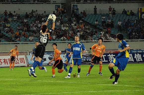 或許是優勢來的如此的輕松,讓舜天國信隊隊員多少有些松懈。比賽進行到第32分鐘,先是中場傳球失誤,接著門將關震又貿然出擊沒能及時回位,楊思源幾乎是打了一個空門,1:2。