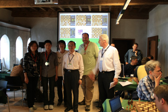 參賽的現(xiàn)場(chǎng),由于“中國(guó)深度”和“北理之芯”的注冊(cè)隊(duì)名分別為“BIT1”和“BIT2”,“BIT”的名字成為大家議論的焦點(diǎn)。同樣參加比賽的日本選手,甚至好奇地自己跟“BIT”較量起來(lái)。正如ICGA競(jìng)賽委員會(huì)主任Van Den Herik在頒獎(jiǎng)時(shí)連續(xù)宣讀“BIT1”和“BIT2”后所說(shuō),“This is Chinese party!”這屆計(jì)算機(jī)博弈錦標(biāo)賽,成為了中國(guó)博弈選手們的盛會(huì)。兩位參賽代表崔皓、林思然也在與各國(guó)學(xué)生、老師的交流中收獲了很多。