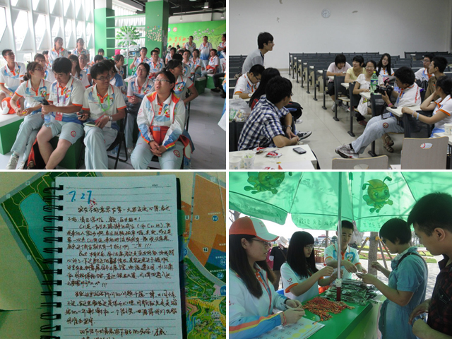 成績來之不易,我校延河之星志愿者總隊為保障暑期服務的順利進行做了大量工作。7月初,總隊提前對550名志愿者的暑假服務意向展開了調查,同時安排工作人員保持暑期常態化值班,組織志愿者選崗并及時解答志愿者疑問。7月中旬,總隊根據我校“小V蜂”的高校崗服務次數和蜜糖數評選出了10名“志愿服務之星”,同時為更好地宣傳我校園博會志愿者工作,展現志愿者青春風采,總隊舉辦了“志愿者攝影風采大賽”并積極籌備學校的櫥窗展覽,鼓勵志愿者們通過自己的鏡頭記錄上崗服務的精彩時刻。此外,為加強志愿者間的交流和互動、使志愿者勞累的身心得以放松,總隊舉辦了一次校內Party,并在我校包點崗位C01、C11各自設置一本志愿服務感悟留言,供上崗志愿者記錄感悟、傳授經驗。總隊的細心工作,得到了志愿者們的積極響應,有效提高了我校“小V蜂”的服務熱情,在校內營造了一種“踴躍服務園博,志愿點亮青春”的良好氛圍。