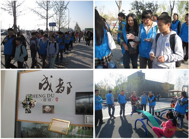 在兒童活動園區,志愿者與孩子們進行了豐富多彩的娛樂活動,體驗著現代科技帶來的便利。在成都園區,孩子們與大熊貓進行互動,借此機會,志愿者給孩子們講解大熊貓的有關知識,希望孩子們從小樹立保護瀕危動物的意識。在游園結束之前,志愿者帶領孩子們觀看了花車游園節目,再次體會到北京園博綠色交響、盛世園林的主旨。