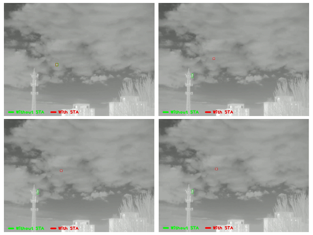 冠軍團隊針對紅外無人機目標尺度小、對比度低、易受背景干擾等難題,提出的新型SiamSTA跟蹤器。SiamSTA充分挖掘紅外視頻序列中的時空信息和目標運動特征,設計了局部跟蹤和全局檢測的自適應動態目標搜索機制:當目標狀態可靠時采用局部跟蹤,利用視頻時空連續性,有效抑制背景干擾;當目標狀態不可靠時(發生完全遮擋、從視野消失等)采用全局檢測,結合目標運動特征鎖定候選區域,提高目標再捕獲概率。