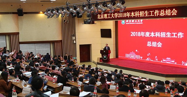 張軍代表學校向為招生工作付出辛勤勞動的全校教職工、學生和廣大校友表示誠摯謝意。他指出,一流生源是一流大學人才培養的起點,是高校可持續發展的基礎,是大學品牌和社會信譽度的重要指標。為做好學校2019年本科招生工作,實現預定生源質量目標,他向全校招生工作者提出五點要求:勤動“腦”,善謀劃,加強頂層設計,主動求新求變;巧用“眼”,找問題,勇于正視差距,精準實施策略;精著“手”,抓落實,采取多種舉措,實現預期結果;多動“腿”,勤走訪,常態招生宣傳,培養北理“鐵粉”;真走“心”,交朋友,強化雙方互動,用情聯絡中學。他要求各招生組要做到五個“一”:打造一支過硬團隊,瞄準一個發展目標,制定一個詳細計劃,拿到一份精準名單,實現一個預期結果。他強調,招生工作關乎千家萬戶的切身利益,社會關注度極高,全校招生工作者必須嚴格遵守招生工作紀律;在學校創建“雙一流”的關鍵時期,招生工作要超前謀劃、打破定式、主動設計、全力以赴、久久為功,實現跨越式提升,為學校早日建成扎根中國大地的世界一流大學而努力。
