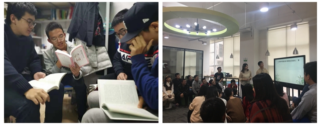 六藝會館倡導學生利用宿舍溫馨的環境開展社區讀書會,一起閱讀并探討由書院教師、三全導師、沙龍主講人等推薦的各類書目。“聽君一席話,勝讀十年書”“震耳發聵,實為大學路上的一盞明燈”是學生在參與座談聯誼會后的真情流露,同學們充分利用“書”課堂去表達想法,聆聽教誨,學會有效溝通。在提升人文素養和溝通能力之余,對于學習交流的內容感到醍醐灌頂,對大學有了新的理解和認知。