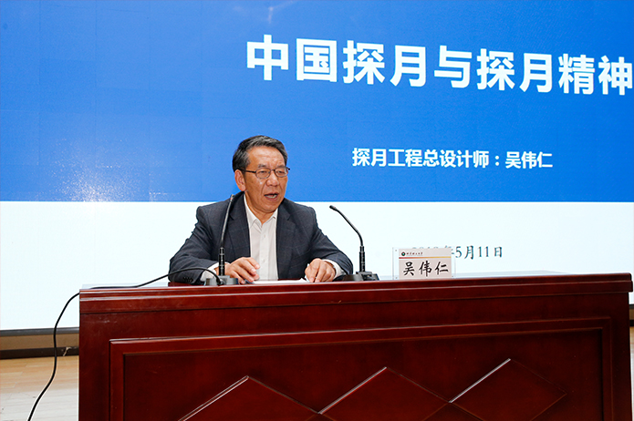 在這堂別具一格的思政課上,吳偉仁院士用親切風趣的語言、精美的圖解、豐富的數據,深入淺出地向師生介紹了人類為什么探月,世界探月的歷史,我國探月工程實施15年來取得的豐碩成果及形成的探月精神。嫦娥一號實現繞月探測、嫦娥二號首次實現“一探三”、 嫦娥三號實現月球著陸探測、嫦娥四號實現人類首次月球背面著陸探測、嫦娥五號將實現月球采樣返回,這些成果無不體現了中國探月水平和能力的快速發展,極大地促進了科學發展和技術進步,也體現了中華民族的國家意志和責任擔當,更是綜合國力的集中體現。