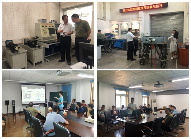 8月15日上午,施陽教授參觀實驗室并進行座談交流。王軍政代表實驗室對施陽的到來表示熱烈歡迎,并介紹了實驗室發展歷史、基本情況和研究方向。施陽對實驗室研究工作給予高度評價,并介紹了在維多利亞大學建立的控制與信息處理實驗室發展情況。之后,施陽參觀了實驗室,包括自主研發高性能永磁式高壓交流伺服電機驅動器、力/位移雙閉環一體化高精度電動缸、電動并聯式四/六輪足機器人—“北理哪吒”、液壓四足機器人、集成式多傳感器環境感知系統等多項研究成果,施陽對實驗室取得的成果給出了高度評價,并對雙方后續合作表示了濃厚的興趣。