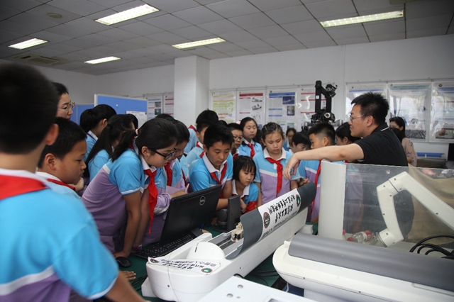 9月16日下午,校科協(xié)聯(lián)合融合醫(yī)工系統(tǒng)與健康工程工業(yè)和信息化部重點(diǎn)實(shí)驗(yàn)室舉辦實(shí)驗(yàn)室開(kāi)放日活動(dòng),來(lái)自北京理工大學(xué)附屬小學(xué)的30名同學(xué)走進(jìn)重點(diǎn)實(shí)驗(yàn)室進(jìn)行參觀。實(shí)驗(yàn)室負(fù)責(zé)人肖楠為同學(xué)們?cè)敿?xì)介紹了醫(yī)用機(jī)器人、醫(yī)學(xué)圖像處理、兩棲仿生機(jī)器人等技術(shù),使同學(xué)們拓寬了科技視野,增加了對(duì)科學(xué)儀器和科學(xué)研究過(guò)程的直觀認(rèn)識(shí)。