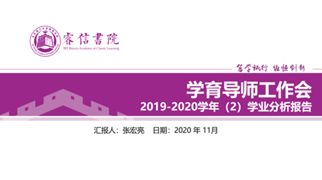 會上,張宏亮首先介紹了書院2018級和2019級學生在2019-2020學年第2學期的學業分析報告,對比了同年級上下兩個學期的學習情況以及與高年級同期的學業情況。接著,他從學育導師工作規范、重點工作和具體要求三個方面,對學育導師工作進行了說明。他要求學育導師要對照工作規范,一是履行崗位職責,完成工作任務;二是加強思想引領,參加班級建設;三是夯實學風建設,做好學業幫扶;四是開展心理輔導,關注重點學生;五是注重創新培養,提供項目資源;六是加強專業教育,傳承學院文化。