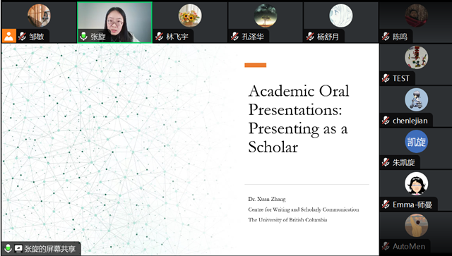 10月9日,加拿大英屬哥倫比亞大學(xué)寫(xiě)作中心張旋博士應(yīng)外國(guó)語(yǔ)學(xué)院寫(xiě)作中心鄒敏老師的邀請(qǐng),作題為 “Academic Oral Prese...