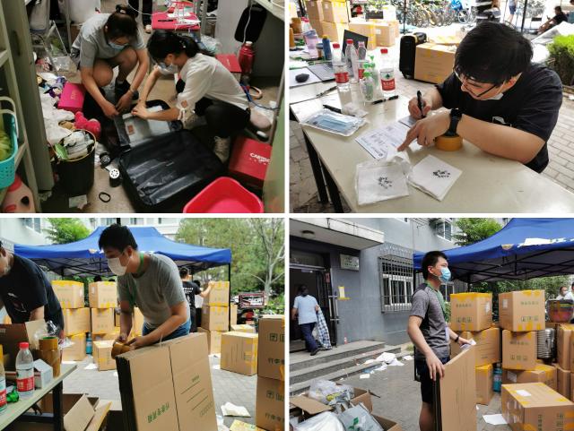 學院的輔導員們更是變成了“十項全能”的“超人”,調試設備、打包、搬運、安排午餐……每個人都是身兼數職地從早忙到晚,飯顧不上吃,水也顧不上喝,充電寶成了隨身的必備品。“此次打包工作責任重大,每一件行李物品、郵寄運輸都不能出問題,為了同學們能夠順利安心地畢業,我們再苦再累也是值得的。”畢業年級輔導員認真地說道。