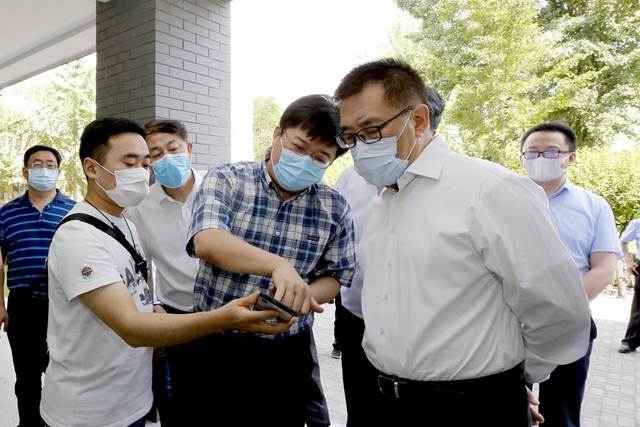 根據(jù)2020年春季學期畢業(yè)年級學生返校工作安排,6月6日,學校迎來首批返校畢業(yè)年級學生,北京市委常委、教育工委書記王寧帶隊到校檢查畢業(yè)年級學生返校工作,學校黨委書記趙長祿、校長張軍陪同檢查。