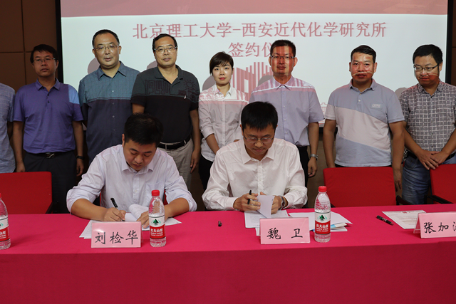論壇期間,劉檢華、魏衛代表雙方簽署了“北京理工大學——西安近代化學研究所研究生聯合培養協議”。自2014年起,北京理工大學化學與化工學院先后招收了10名西安近代化學研究所的青年研究人員為聯合培養博士生,以上青年研究人員現大都已成長為所級科研骨干、專業負責人,并承擔了多項重大科研任務。此次雙方經過協商,簽署協議將在科研院所博士生專項的框架內繼續聯合培養化學工程與技術學科博士研究生,并共同申建國家級人才培養基地,西安近代化學研究所還將為北理化學與化工學院師生開放實驗資源,并為優秀的學生提供獎學金。