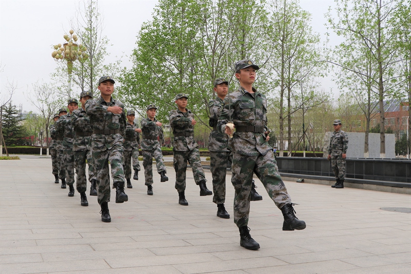 沖拳彈踢打出男兒本色,齊步正步更是豪氣沖天。國旗儀仗隊的同學們也加快了訓練步伐,晚訓時間更是延長至近十一點。當汗水揮灑在一百米的跑道上,當砸地聲一次次回蕩在校園上空,我們知道,他們在用一次次的練習踐行著“護衛國旗 高于生命”的信仰。