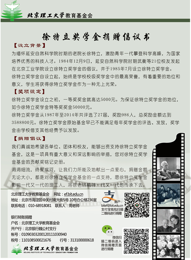 獲取更多信息,請關注官方微信平臺“北京理工大學教育基金會”(BITEF2010)。